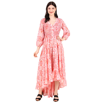Bellissimi abiti da spiaggia lunghi intrecciati con stampa floreale Anti-rughe eleganti ricami India primavera Casual