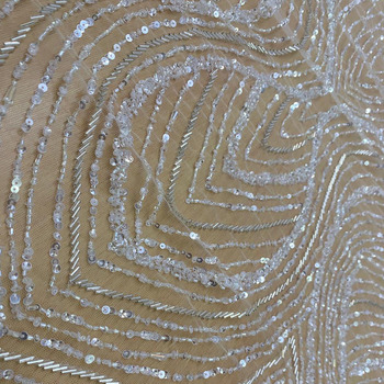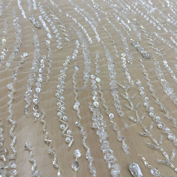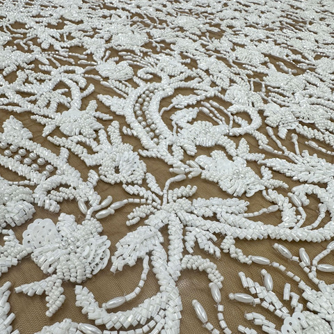 2023 nuovo abito da sposa di moda tessuto di pizzo bianco con perline pesanti con paillettes di cristallo fatto a mano in Nylon di lusso vendita veloce