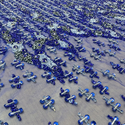 Nuovo arrivo di lusso in cristallo a rete tessuto di pizzo con perline fatte a mano ricamate per abiti da festa Sexy o accessori di abbigliamento