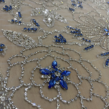 Nueva tela para fiesta y boda, tela de encaje con cuentas de cristal blanco, nuevo producto de cadena de cristal y cristal azul